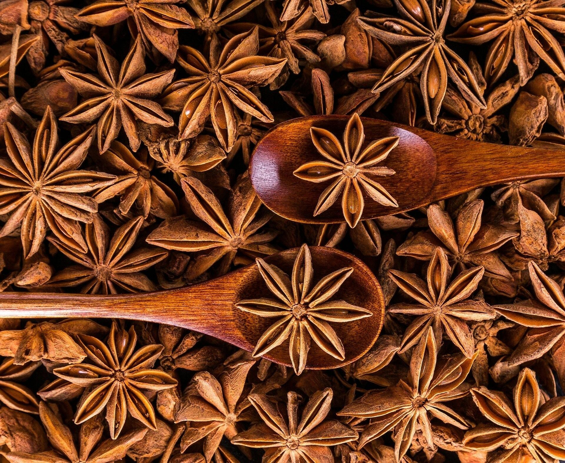 Star anise is the dried star-shaped fruit of Illicium verum. It is dark brown in colour with eight segments. It has a sweetish liquorice taste. It is a major component of garam masala in Indian cuisine. It has a sweet but pungent fennel-like aroma with a spicy warmth.