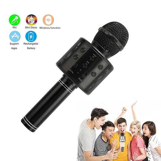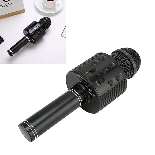 Ketsicart® Wireless Karaoke Mic, Dual Way Connection Noise Reduction Rich Interface Wireless Microphone for Car for Home KTV (Black)