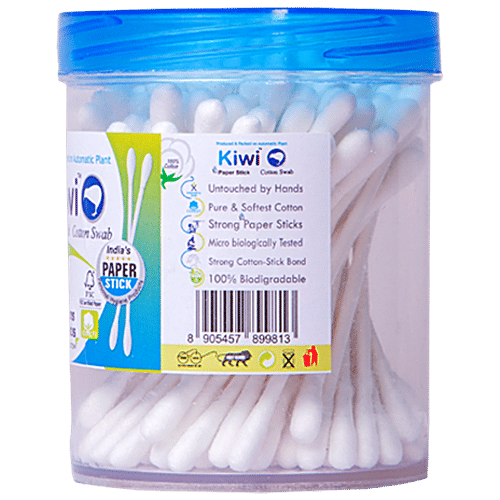 Introducing Kiwi Paper Stick Cotton Swab – a sustainable choice for your daily care routine. Crafted with care, these cotton swabs feature a paper stick and 100% certified organic cotton for a pure, soft touch. They undergo rigorous microbiological testing to ensure quality and safety. Plus, they are 100% biodegradable, aligning with eco-conscious practices. Choose Kiwi for a gentle, environmentally responsible approach to your personal care needs. Pure, soft, and planet-friendly – Kiwi Paper Stick Cotton Swabs are a natural fit for your daily routine.