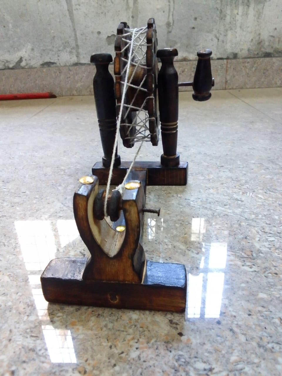 K.K Handicraft Beautifully Wooden Spinning Wheel Charkha Showpiece for Home Décor