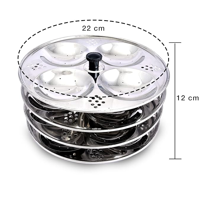 KSJONE Stainless Steel Idli Stand | 4-Rack Idli Plates | Regular Size Idli Preparation | Supreme Quality Food Grade Idli Stand | Makes 16 Idlis(4 Plate)