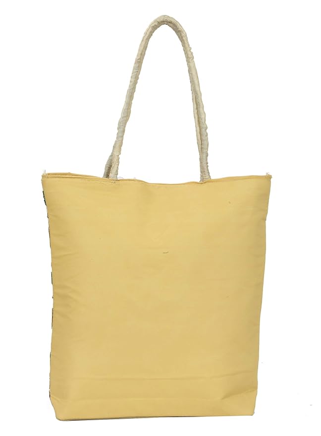 Kuber Industries Embroidery Handbags for Women | Zipper Tote Bag for Grocery, Shopping, Travel, Beach | Shoulder Bags for Women (Cream)-KUBMART11888, Standard