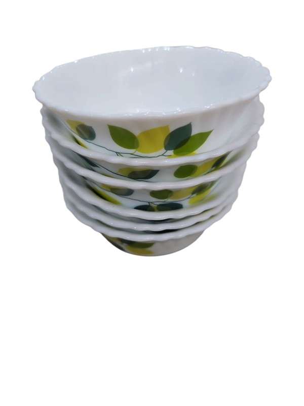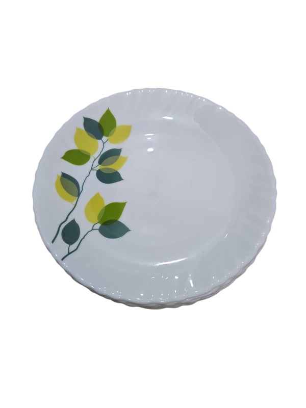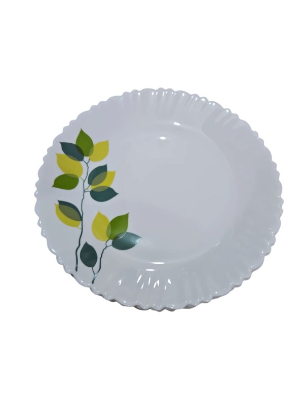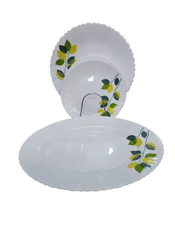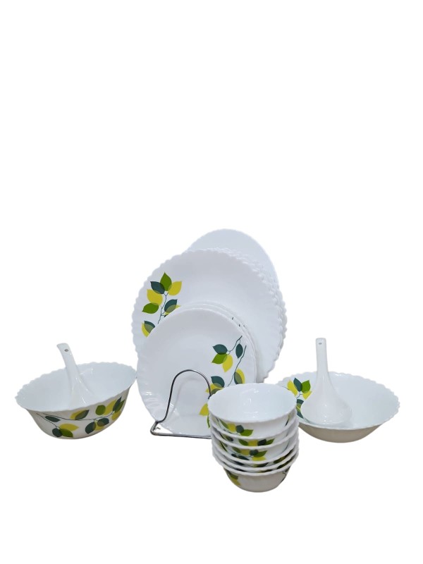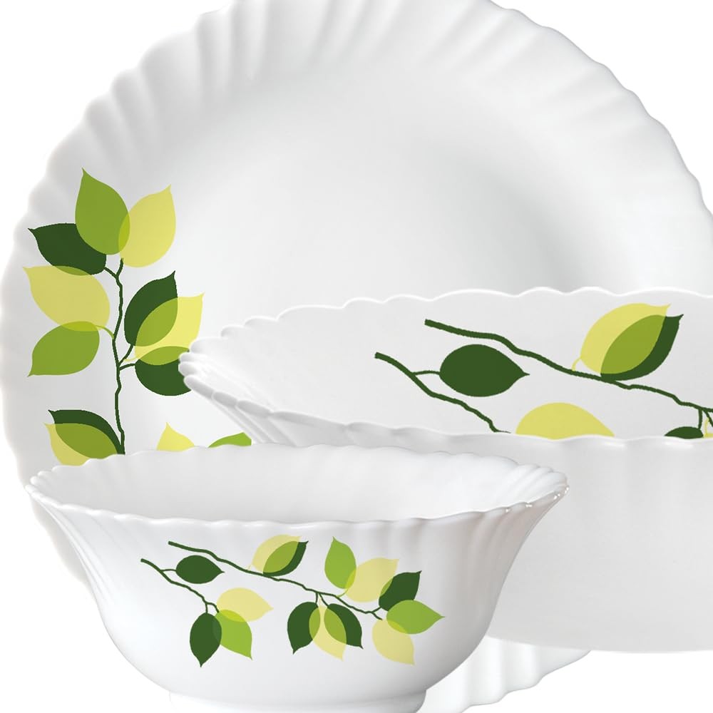 Larah by Borosil Green Leaves Silk Series Opalware Dinner Set | 23 Pieces for Family of 6 | Microwave & Dishwasher Safe | Bone-Ash Free | Crockery Set for Dining & Gifting | Plates & Bowls | White