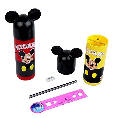 Laxmi Collection Perpetual Blisstm FancyandAttractive MickeyMouse Shape PencilBox with StationaryKit Gifts for Kids,9x5x20-Cm(Multicolour)