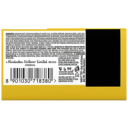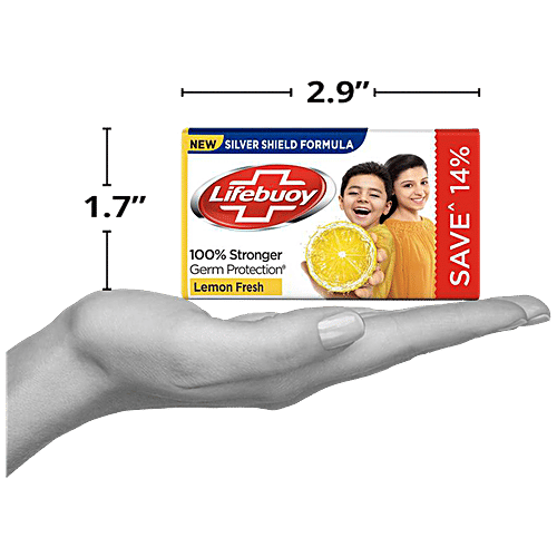 Experience a refreshing shower every day with this Lemon Fresh Soap Bar from Lifebuoy. It rejuvenates your senses keeping you fresh throughout the day. Formulated with an efficient cleansing property of lemons, this soap bar is packed with natural antibacterial properties. This disinfectant soap protects your skin from disease-causing bacteria and ensures 100% better germ protection for you and your family. The citrusy fragrance will leave you thoroughly fresh! Get the Lemon Fresh Soap Bar, today!