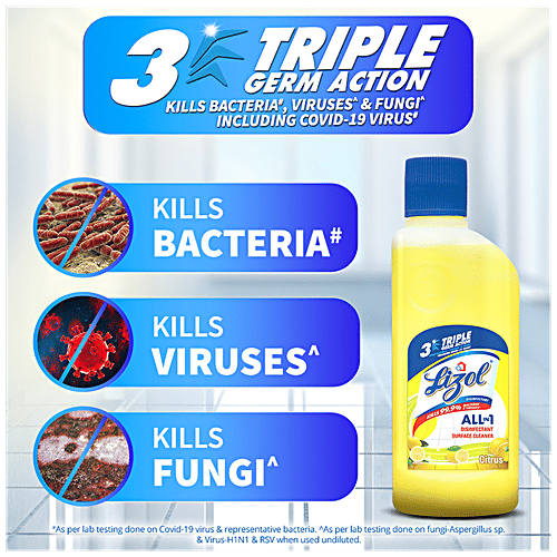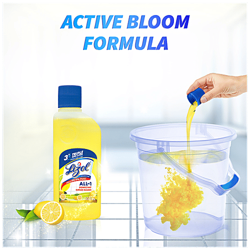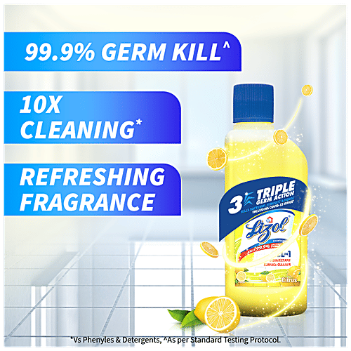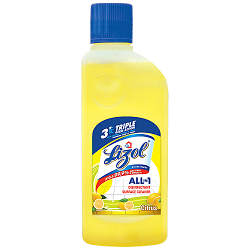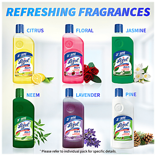 Lizol is India's No.1 Household Cleaning Brand, highly recommended by the Indian Medical Association. Lizol guarantees to kill 99.99% of disease-causing bacteria as well as germs while leaving your room smelling fragrant with a wide variety of aromas. Suitable for household with pets.^ This cleaner removes 100 types of Stains & Germs and leaves a Pleasant Fragrance. Available Variants are Pine, Floral, Citrus, Jasmine, Lavender, Sandal and Neem in the sizes: 200 ml, 500 ml, 1L, 1.8L Refill, 2L and 5L. ^Disclaimer: “When used as directed”