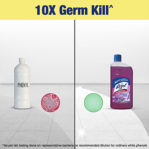 Lizol is India's No.1 Household Cleaning Brand, highly recommended by the Indian Medical Association. Lizol guarantees to kill 99.99% of disease-causing bacteria as well as germs while leaving your room smelling fragrant with a wide variety of aromas. Suitable for household with pets.^ This cleaner removes 100 types of Stains & Germs and leaves a Pleasant Fragrance. Available Variants are Pine, Floral, Citrus, Jasmine, Lavender, Sandal and Neem in the sizes: 200 ml, 500 ml, 1L, 1.8L Refill, 2L and 5L. ^Disclaimer: “When used as directed”