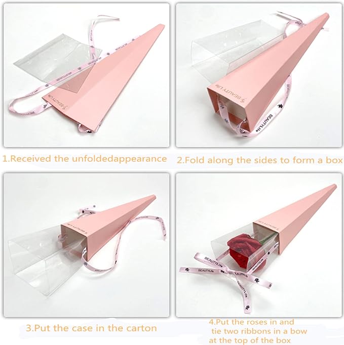 LONG XIN SERIES 1 Pcs Pink Flowers Gift Bags Single Roses Bouquets Bags Rose Packaging DIY Flowers Wrapping for Valentines Day Wedding Birthday