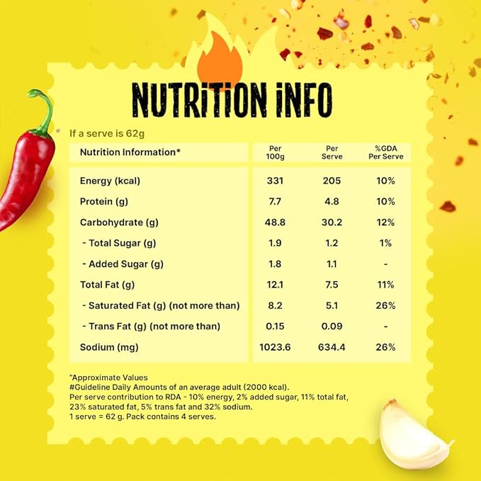 Bold & Spicy Garlic Flavor – Savor the perfect blend of fiery spice and rich garlic, delivering an intense, mouthwatering taste in every bite Ready in Just 2 Minutes – A quick and hassle-free meal option for busy days, late-night cravings, or whenever hunger strikes Richly Seasoned Spice Mix – This expertly crafted seasoning blend guarantees a deep, aromatic, and flavorful experience with every slurp Enjoy It Your Way – Delight in the delicious taste as is, or enhance it with your favorite veggies, eggs, or proteins for a satisfying meal Premium MAGGI Quality – Made with trusted Nestlé ingredients, ensuring the authentic taste and texture that MAGGI fans cherish. An excellent option for spice lovers looking for a flavorful vegetarian instant noodle