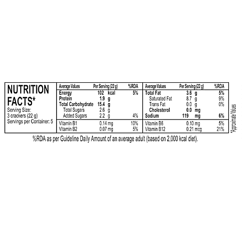 Malkist Sugar Cracker Biscuit is a unique crunchy sugar coated biscuit. It is made with 14 layers sheets to provide crunchiest experience. The biscuit coated with silky sugar cream on one side, and sugar sprinkle on the other side. On top of that, the biscuit enriched with multivitamins and Malt to keep you fit and energized throughout the day. It's also high-quality imported biscuit from ISO:22000 certified factory for food safety. Allergen information: Contains wheat, milk, soy and yeast. Weight: 135 g Store in a cool, hygienic and dry place