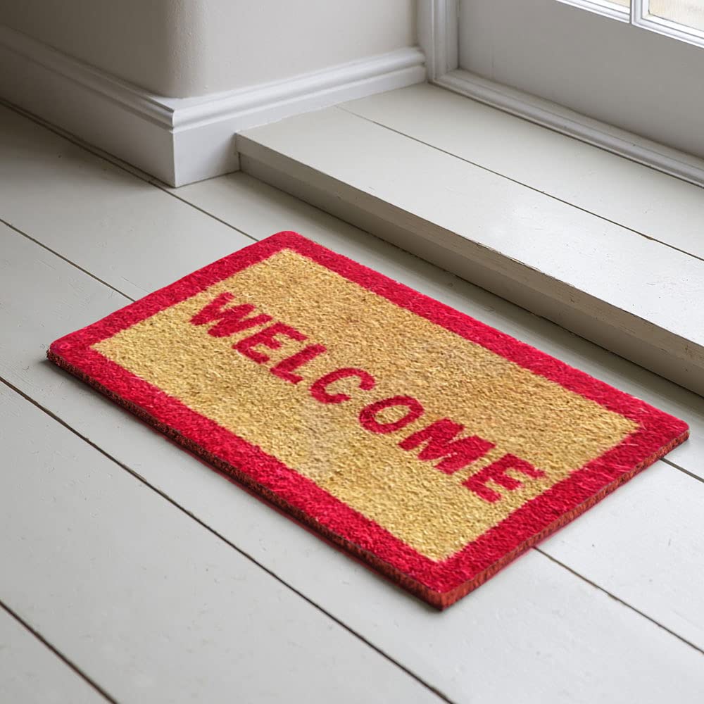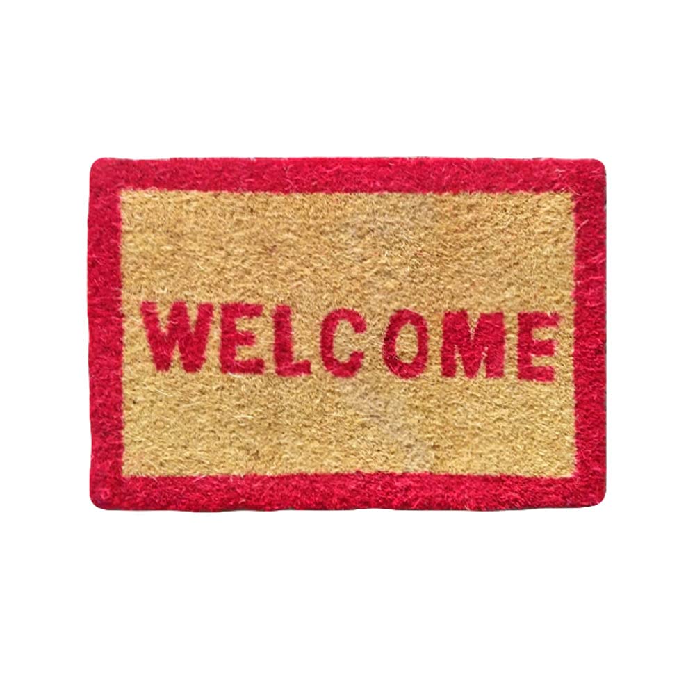 Mats Avenue Coir Door Mat Rubber Backed 31x46 CM White and Red Set of 1