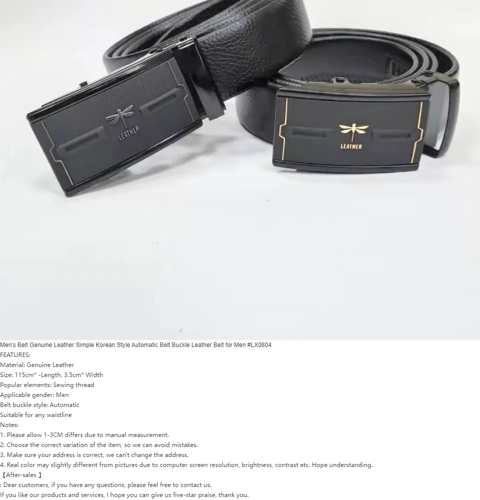 Men's Belt Genuine Leather Simple Korean Style Automatic Belt Buckle Leather Belt for Men #LX0804 Material: Genuine Leather Size: 115cm* -Length, 3.5cm* Width