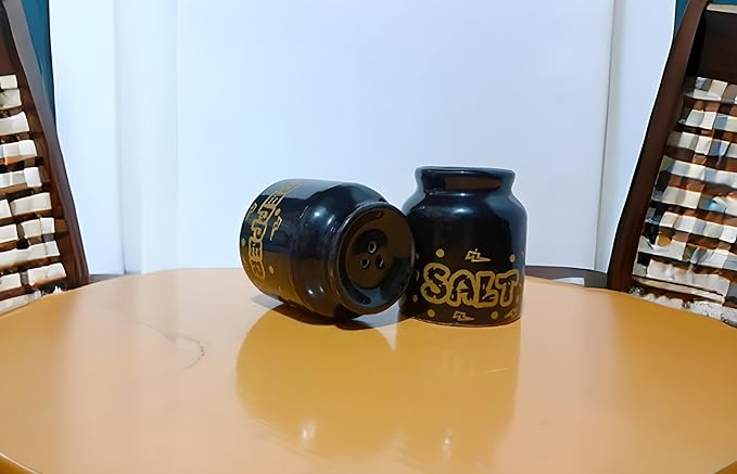 MiRiM Classy Ceramic Salt Pepper (Set of 2) for Dining Table & Kitchen 60 ml (Black)