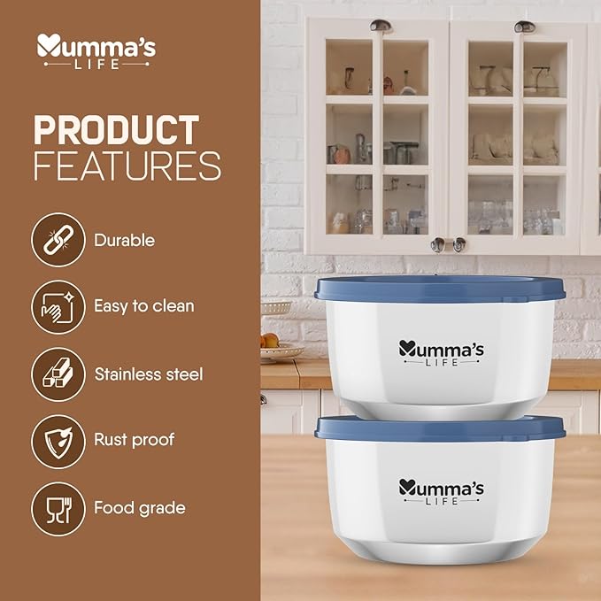 Mumma's LIFE- Stainless Steel Lunch Box Set of 2 (280 ml Each) with Insulated Lunch Bag, Leak Proof Lunch Box for Office & College