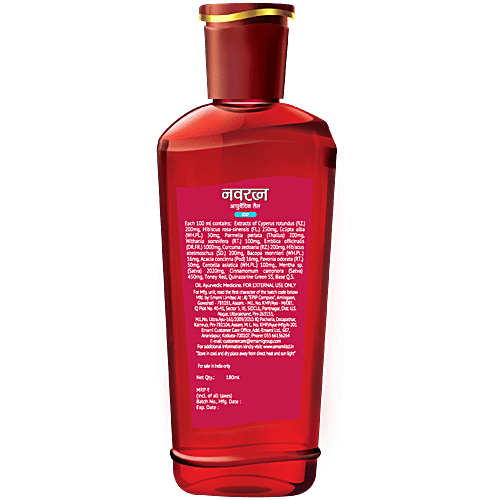 Navratna Ayurvedic Oil - is a Unique Scientific blend of 9 Superior herbs extracted as per Ayurvedic scriptures along with the added goodness of Brahmi and Amla, providing nourishment to the scalp. It keeps you and your family cool and provides effective relief from fatigue & other chronic stress syndromes like, Tension, Headache and Sleeplessness.