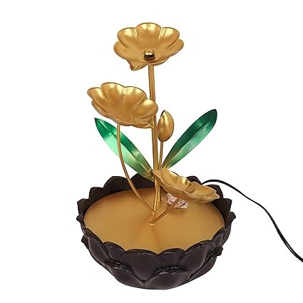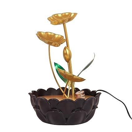 Next in Crafts Tabletop Water Fountain Ornaments with Waterfall Desktop Lotus Fountains, Deep Basin and Natural River Rocks, Indoor Zen Relaxation for Office, Bedroom Decor Item (Golden, 1 PCS)