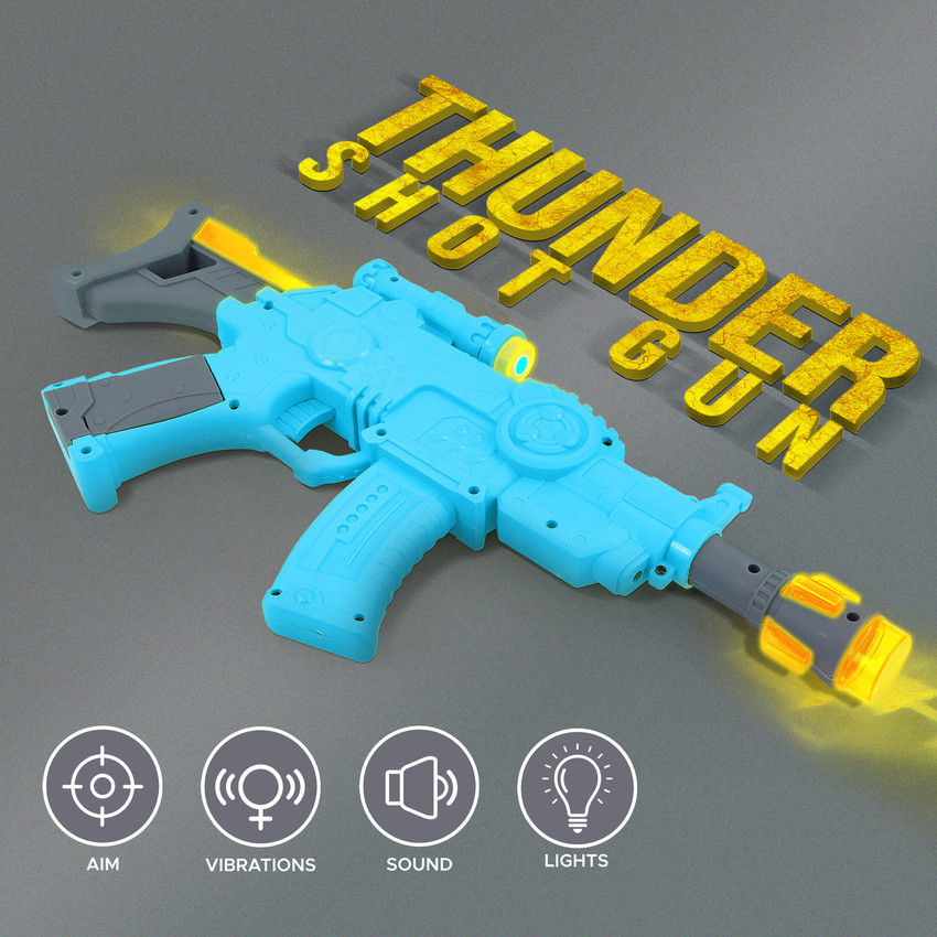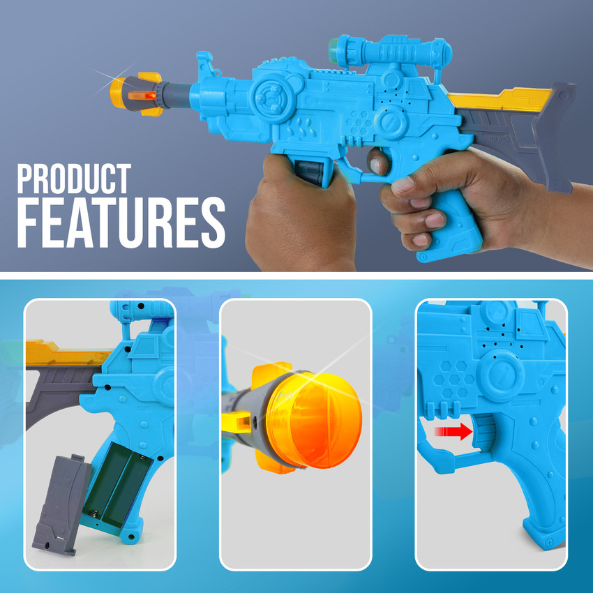 NHR Amazing Musical Thunder Short Toy Gun for Kids, with Ultra Sonic Laser Light Feature, Colorful Light Effects and Music. Amazing look and perfect size. It looks like a real gun. This toy gun helps enhance the ability to concentrate, focus concentration and target shooting skills. While playing with these types of toys, your child will not only acquire some knowledge but will also learn some new things. Give them a gift and see a sweet smile on the little soldier's face. Feel the action when you pull the trigger. This toy gun is made of high-quality plastic material which is highly durable. Requires 2 AA batteries (not included). Best gift for your little ones.