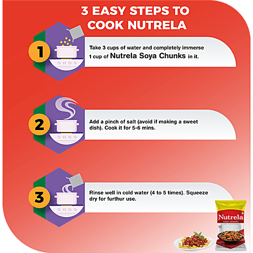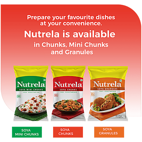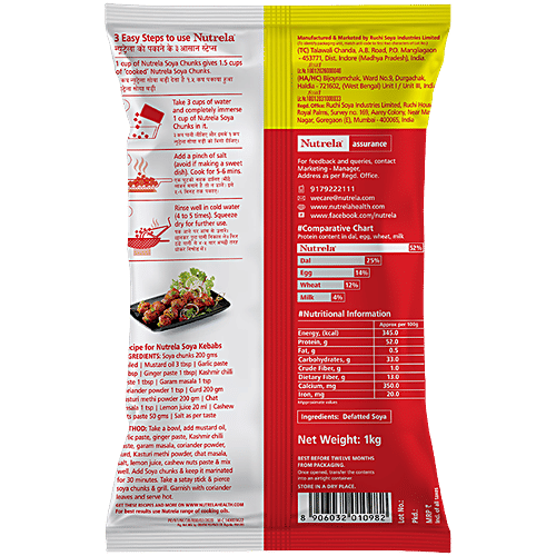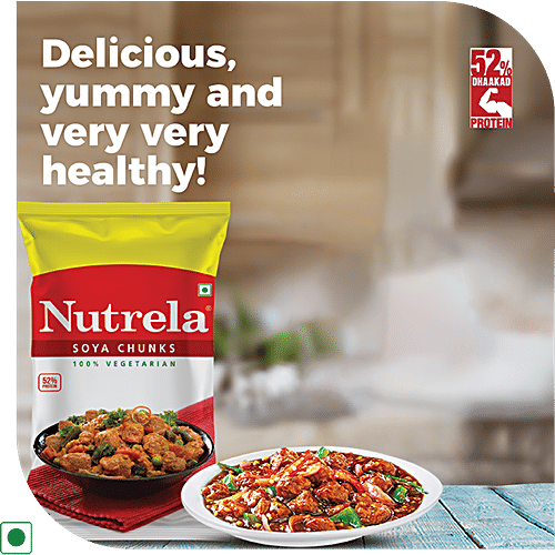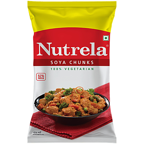 Patanjali Foods Ltd Nutrela Soya Chunks are made from soy flour. Soya Chunks contain immunity-building nutrients, protein, iron, and zinc. They are rich in dietary fibre and strengthen your immunity. They are very easy to prepare and make tasty dishes. They are a blank canvas that you can paint on; they are odourless and tasteless by themselves. They can be used in many dishes and are healthy and a good source of calcium.