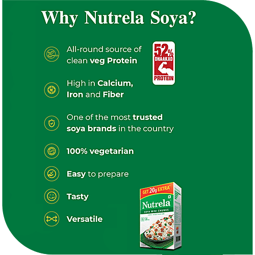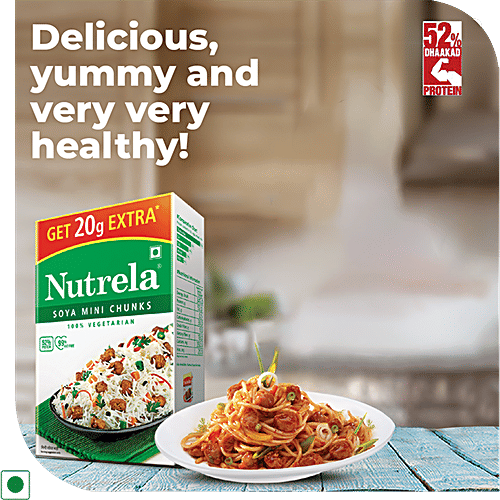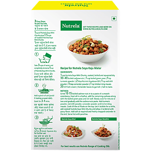 Patanjali Foods Ltd Nutrela Soya Mini Chunks are made from soy flour. Soya Chunks contain immunity building nutrients, protein, iron and zinc. It is rich in dietary fiber and strengthens your immunity. It is very easy to prepare and makes tasty dishes. They are a blank canvas that you can paint on, they are odourless and tasteless by themselves. It can be used in many dishes and it is healthy and a good source of calcium. It is also a great replacement for chicken or any other meat.