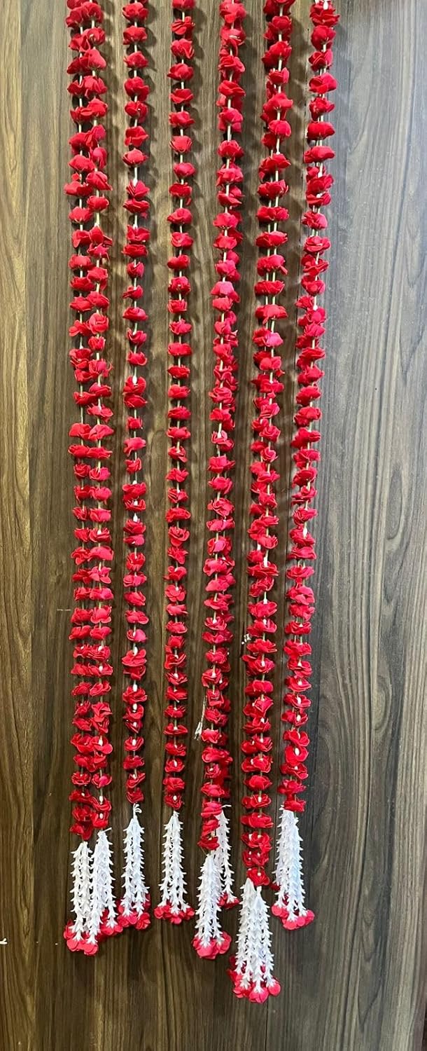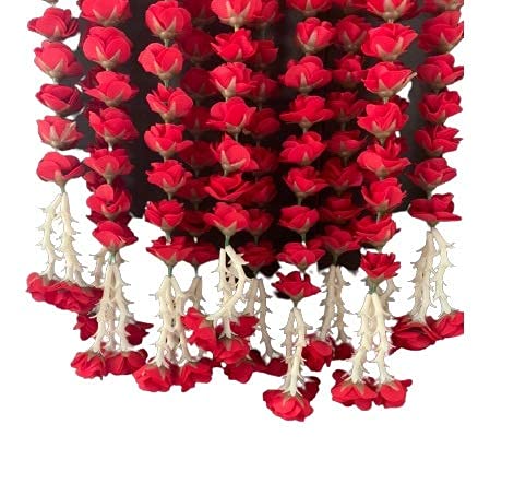 Pure handmade Indian product artificial Pink Roses based Garland/Ladi/Sting for Eid, Diwali, Christmas, Wedding and Navratri decoration Contain 50-55 red roses (Gulab) 157 cm or 5.1 Feet long Traditional Look, Easy To Clean, Durable, Auspicious, Economical