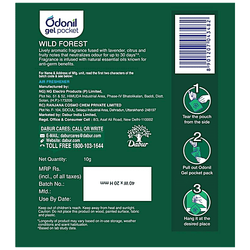Odonil Gel Pocket - Wild Forest, Long-Lasting Fragrance, Provides Germ Protection, 10 g