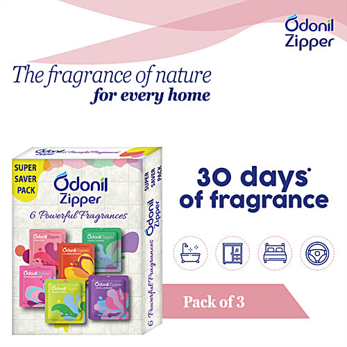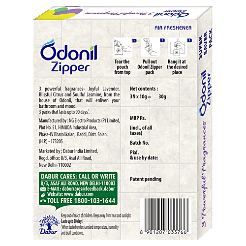 Odonil Zipper Air Freshener - Joyful Lavender, Soulful Jasmine & Blissful Citrus, 30 g (3 N X 10 g each)