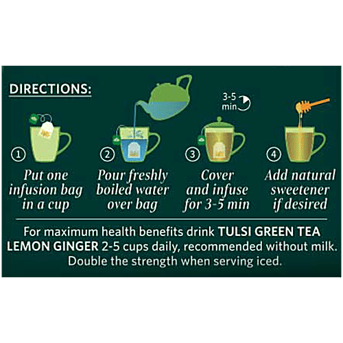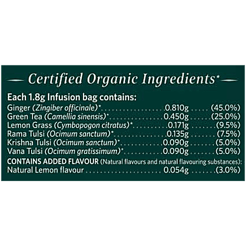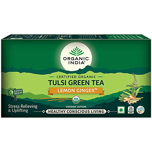 Organic India Organic Tulsi Green Tea - Lemon & Ginger, Stress Relieving, 45 g (25 Bags x 1.8 g each)