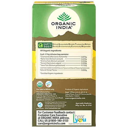 Organic India Tulsi Honey Chamomile Tea, 43.5 g (25 Bags x 1.7 g each)
