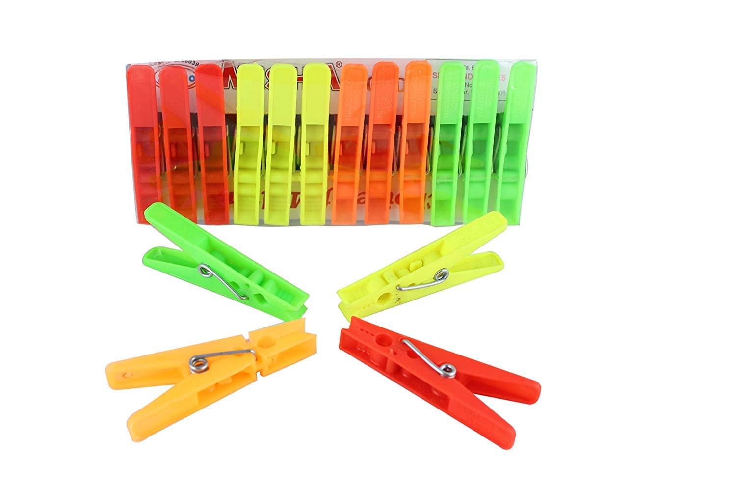 Sinco Misha Plastic Cloth Pegs Clips Multicolor - Pack of 1 (12 Pieces)