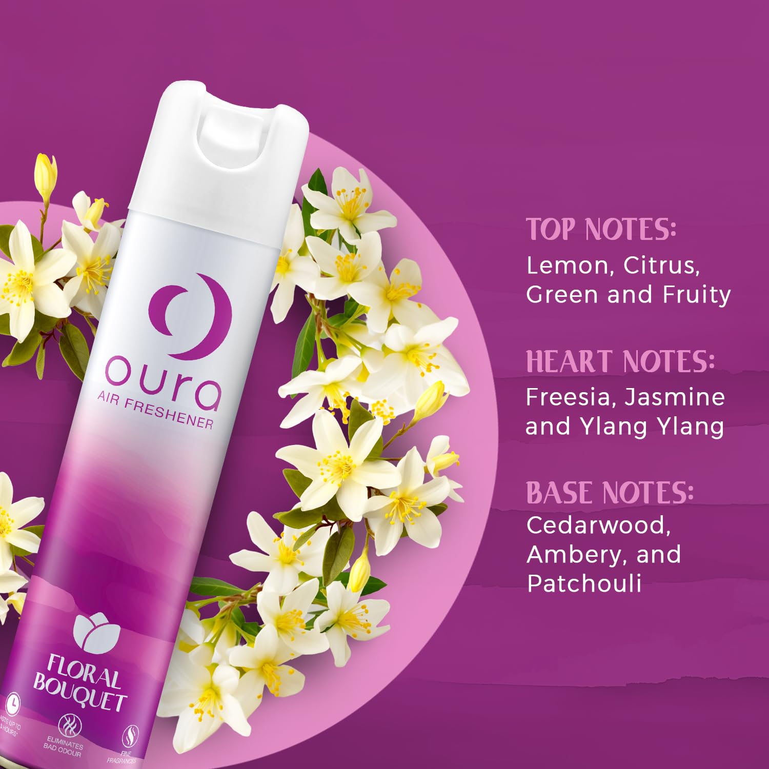 OURA Floral Bouquet Air Freshener, 220ml | Home Fragrance | Air Freshener Spray for every room | Eliminates Odor For Home & Office | Fine Fragrances | Long Lasting Room Freshener