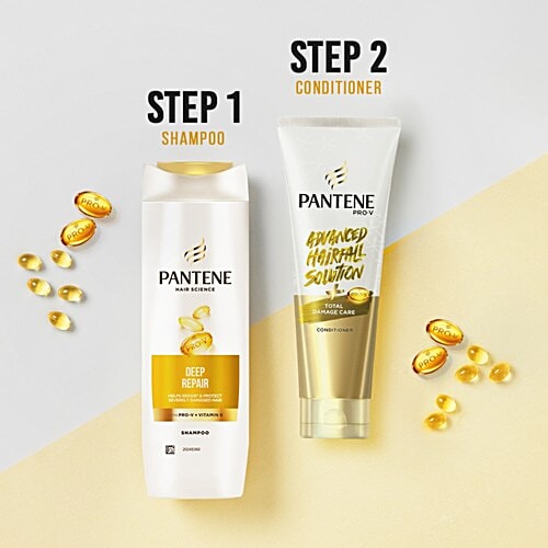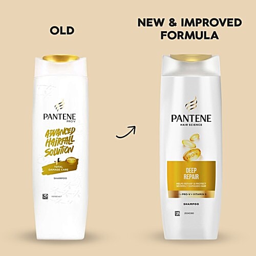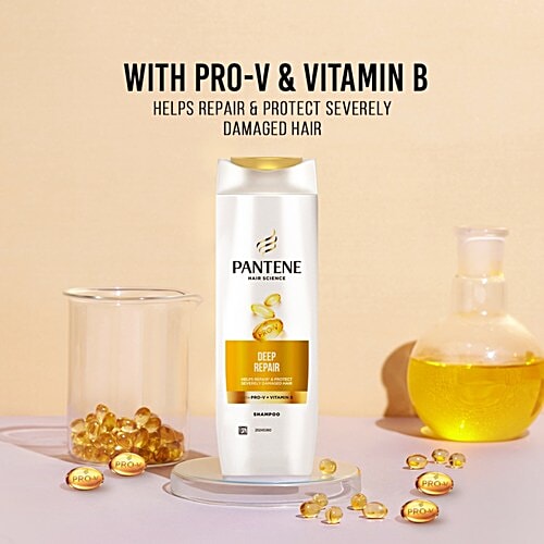 New Pantene Hair Science Deep Repair Shampoo with the revolutionary science of Pro-v formula & Vitamin B. 300%* MORE PRO-VITAMINS & 300% MORE* DAMAGE PROTECTION^. It strengthens your hair from root to tip. New Pantene Hair Science helps repair & protect severely damaged hair. For everyday use, try it with the Pantene damage care conditioner for reduced hair fall. *Disclaimer : *Vs Current Pantene shampoo ^With system use vs P&G non conditioning shampoo & Hairfall due to breakage.