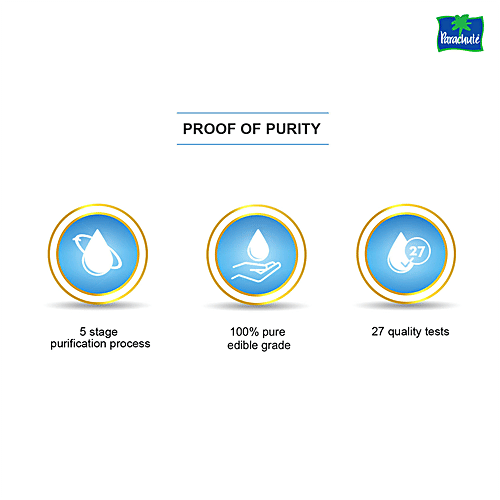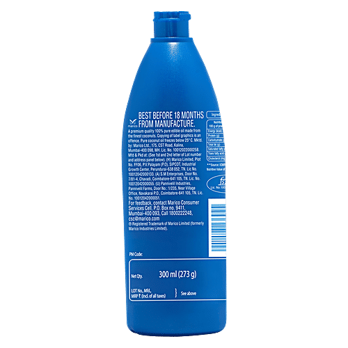 Parachute Coconut Oil is India’s No.1 coconut oil that contains the goodness of 100% pure coconut oil. It is made from naturally sun-dried coconuts sourced from the finest farms of our country. The oil is extracted from the nuts through a meticulous hands-free process. It goes through a 5 stage purification process and as many as 27 quality tests are performed on the oil so that each bottle that reaches you is 100% pure- EVERY SINGLE TIME. A tamper-proof seal ensures that the rich aroma of raw coconuts is preserved for a long time. It contains no added chemicals, scent, additives or preservatives and lasts fresh & safe for up to 18 months. It is licensed by FSSAI as an edible grade coconut oil. All this ensures that every bottle of coconut oil adheres to the Parachute promise of being 100% safe and 100% pure. Parachute coconut oil is now available in convenient sizes of 1 Litre and 600ml packs. Parachute Coconut Oil comes from the house of Marico. Marico sells more than 1 billion packs of coconut oil every year.
