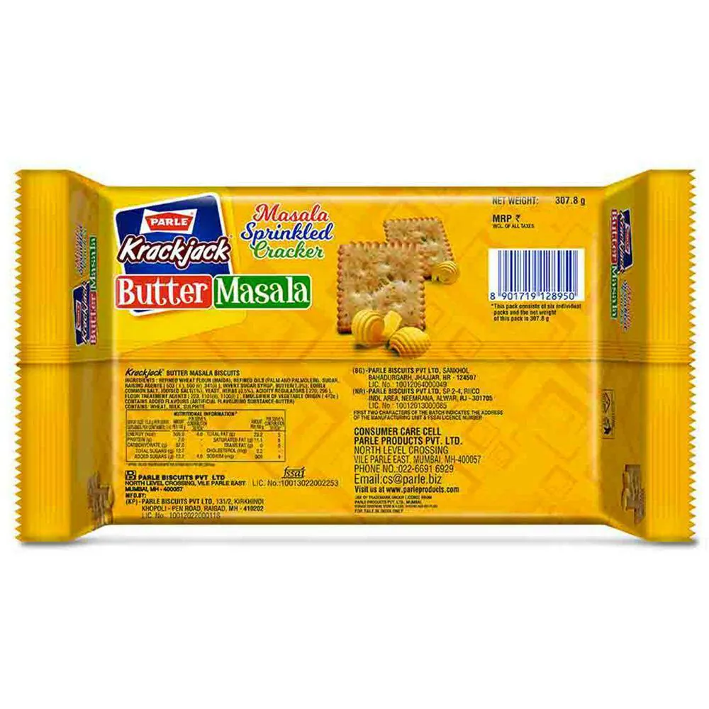 Parle Krackjack Butter Masala Biscuits are India's first salty and buttery crackers that are sure to be loved by one and all. Enjoy your tea time with these delectable biscuits and you will surely love it. These biscuits are perfect to fill your tea time with fun and frolic. Delight a bunch of kids or make wow your guests with this small pack of goodness. It is a treat in itself. So go ahead, buy Parle Krackjack Butter Masala Biscuits online today!