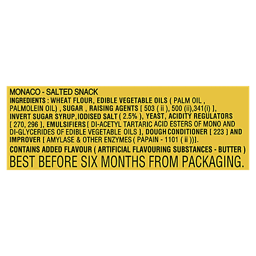 Parle Monaco Salted Biscuits are light, crunchy biscuits offered with a namkeen or salty twist. They can be enjoyed at any time of the day and with something else.