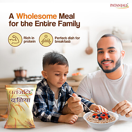 Patanjali dalia is made from good quality wheat. It can be made as both, sweet or salty. Patanjali dalia is perfect food for breakfast & contains natural proteins, vitamins and minerals, providing a wholesome meal to your entire family.