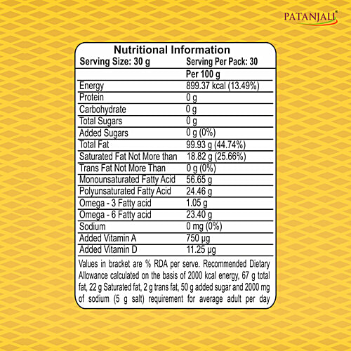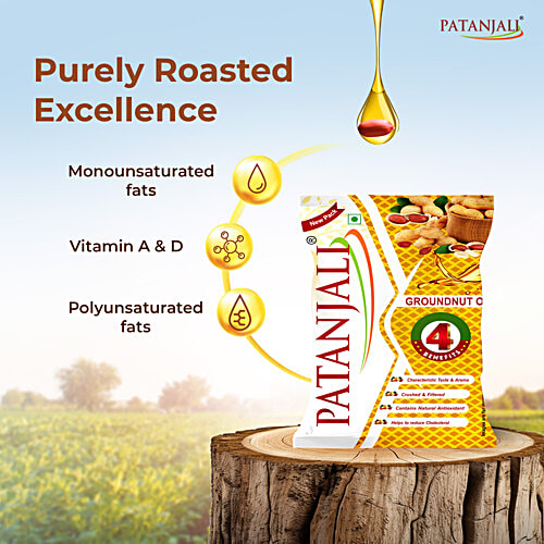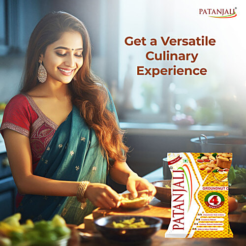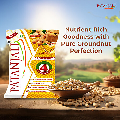 Groundnut oil (or Arachis oil) is a vegetable oil extracted from the groundnut or peanut plant. It has a mild to neutral flavour and is widely used in cooking, baking, and frying. Patanjali groundnut oil is made from carefully selected peanuts that are roasted and then pressed to extract the oil. This premium-quality groundnut oil is rich in monounsaturated and polyunsaturated fats, which are essential for maintaining good health.