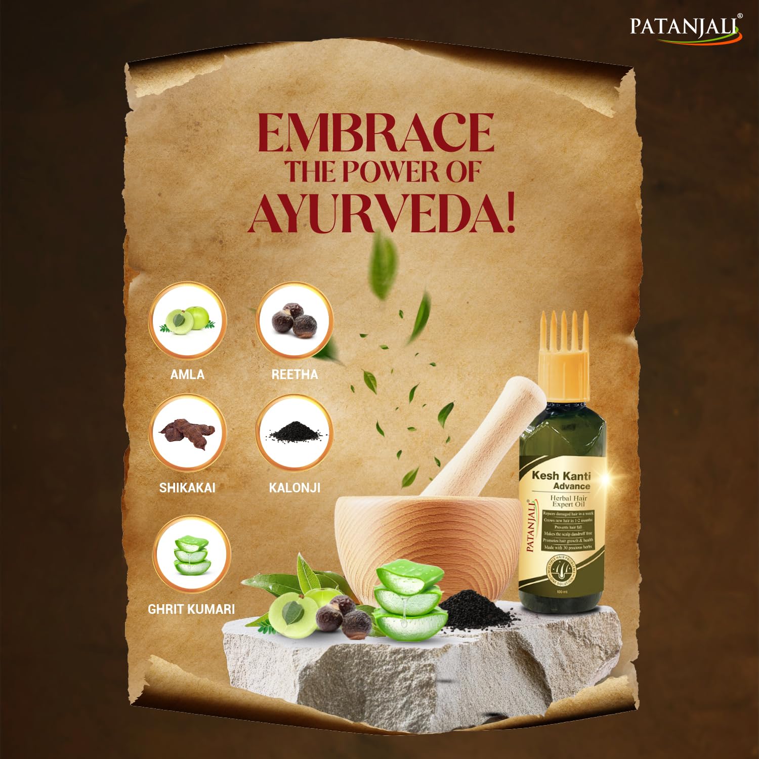 Patanjali Kesh Kanti Advance Herbal Hair Expert Oil 100ml, Stronger & Longer Hair for Women & Men, Nourishing Hair Oil Enriched with Amla, Reetha, Kalonji & Shikakai