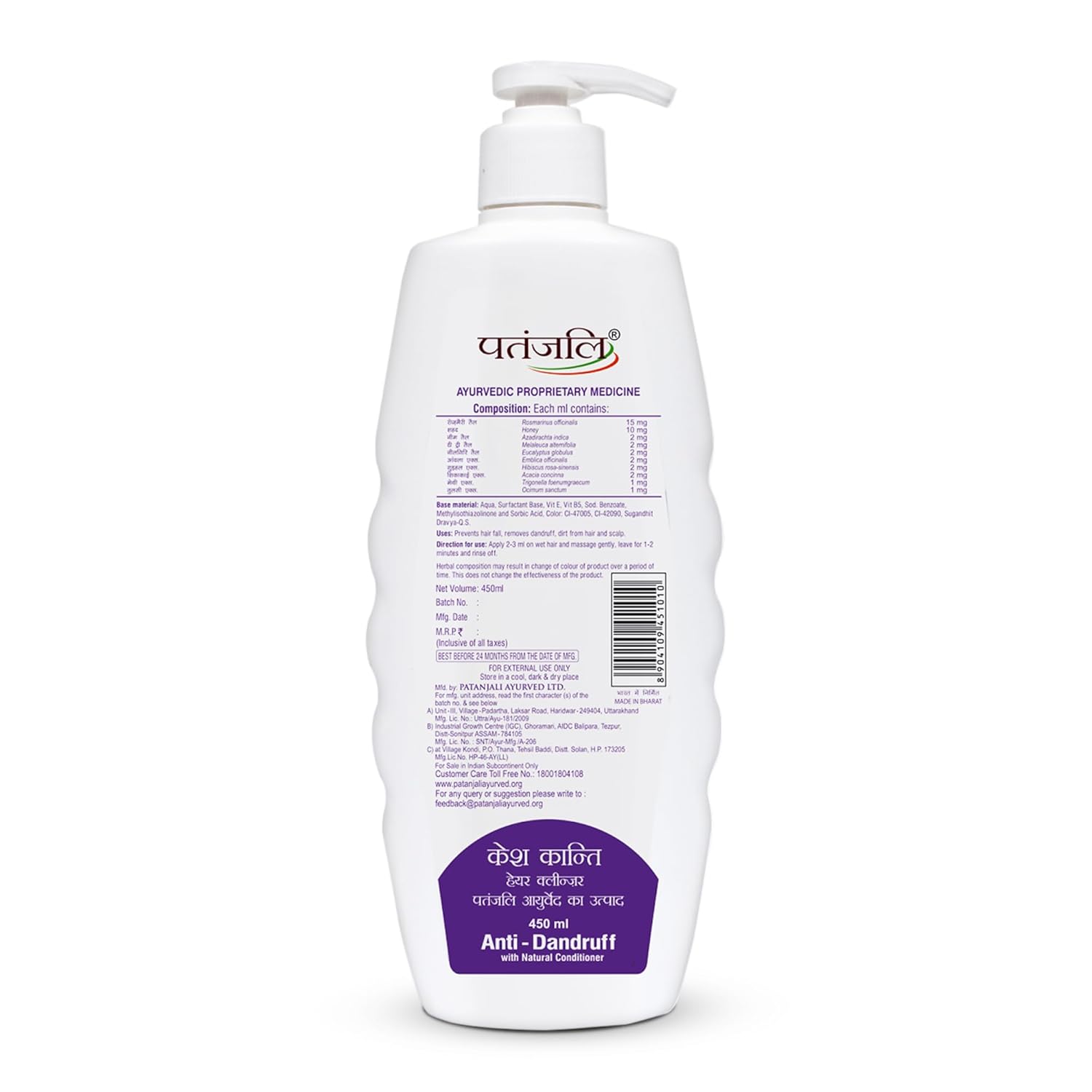 Patanjali Kesh Kanti Anti Dandruff Hair Cleanser 450ml, Herbal Care For Healthy Hair, Suitable For All Hair Types