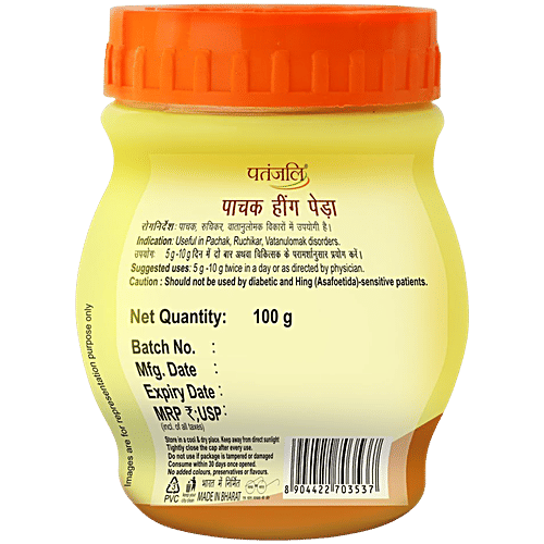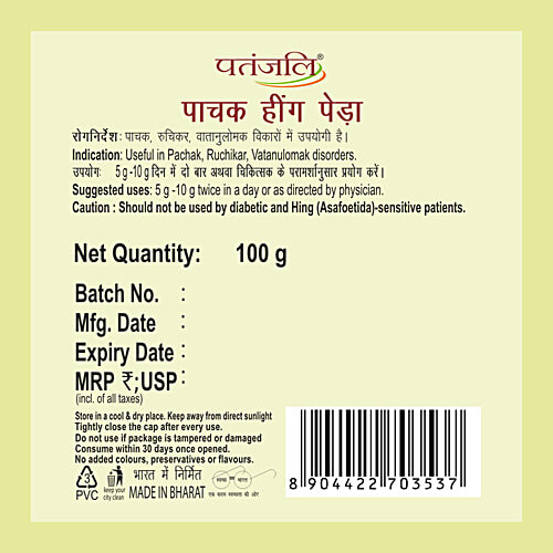 Patanjali pachak hing peda is made out of rich quality hing and other important herbs and spices. Improves your digestion system. Cure the problems like gas, acidity, etc. Pachak Hing Peda is a stimulant for the digestive system that activates the enzymes and acts as an appetizer. This is useful for gas, flatulence, nausea, and other gastric distresses.