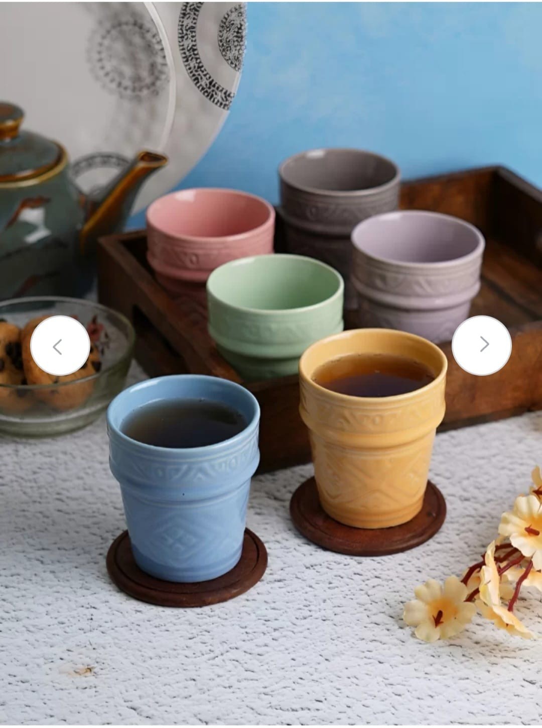 PINK & BLUE 6 PIECES TEXTURED CERMAIC KULLHADS 120ML EACH