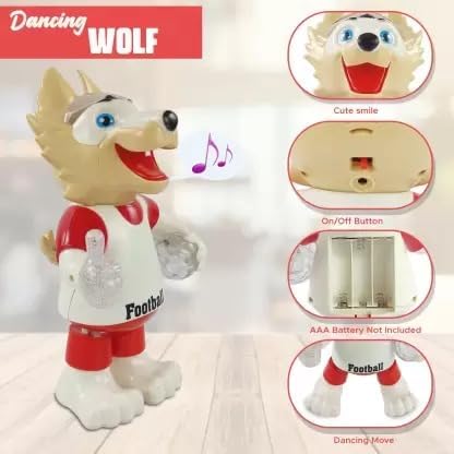 Musical Dancing Wolf With Lightning And Musical Effect Vibrant and Brilliant lightening effect. This fashionable dancing musical apple is enjoyable for children to play with all day long.