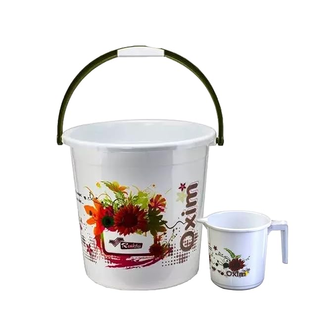 Rishta Oxim Deluxe Plastic 25 Liter bucket - Plastic Bucket with Floral Print - Ultra Durable - Home | Kitchen | Store | Bathroom