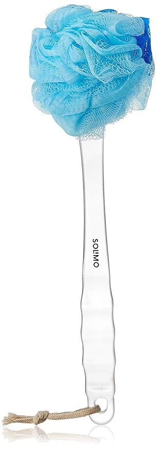RUNA Blue Wash Loofah for Bathing Men and women|Back body Sponge Loofah|Bath Brush Scrubber with Long Handle