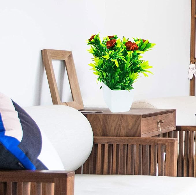 Saikara Collection Artificial Flower with White Pot Decor for Indoor Home Farmhouse Bedroom Shelf Office Desk Bathroom Decoration (Pack of 1) (Kushi Pot)