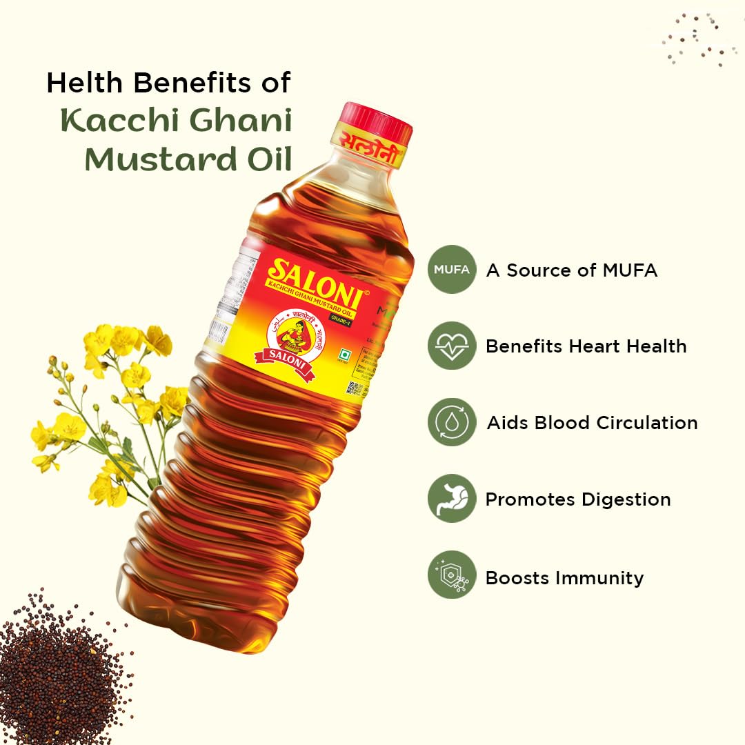 Saloni Mustard Oil 1 LTR bottle - Pure Kachchi Ghani Mustard Oil