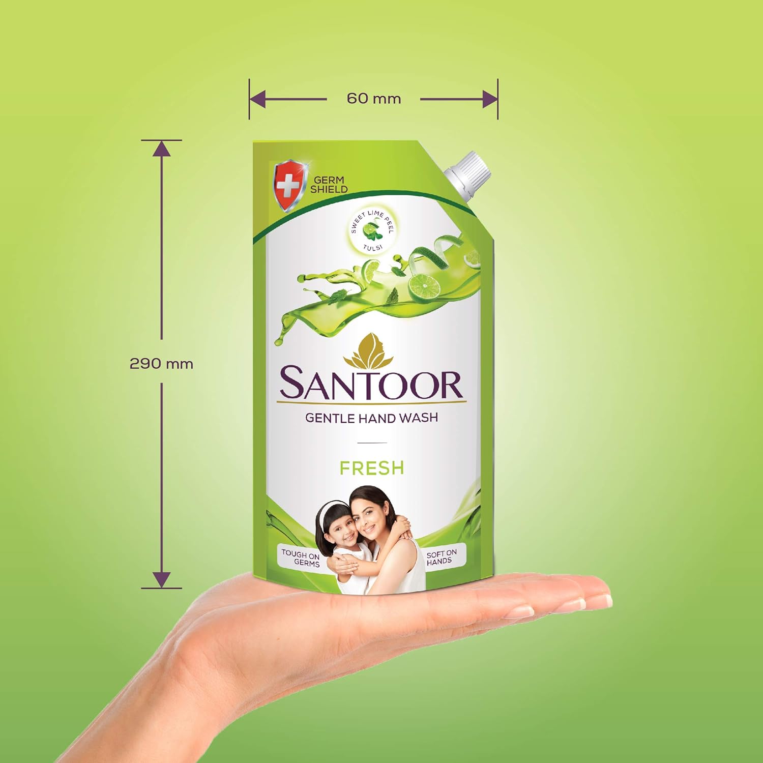 Santoor Fresh Gentle Hand Wash, 650ml with Natural goodness of Sweet Lime Peel & Tulsi