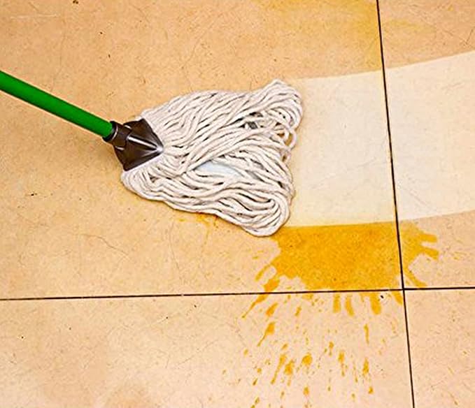 Looped threads: Do not entangle with the furniture and provides a lint free cleaning Triangular head helps to reach and clean intricate corners, Type - String Mop Unique scrubby strips helps cleaning the tough stains on floors Mild steel handle which does not break
