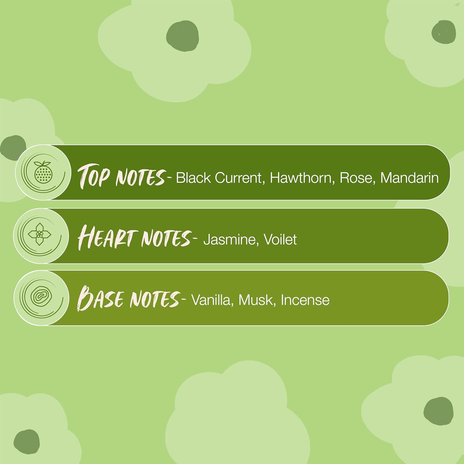 Top Note: Green, fresh Middle Note: Floral, woody Base Note: Musk, ambery