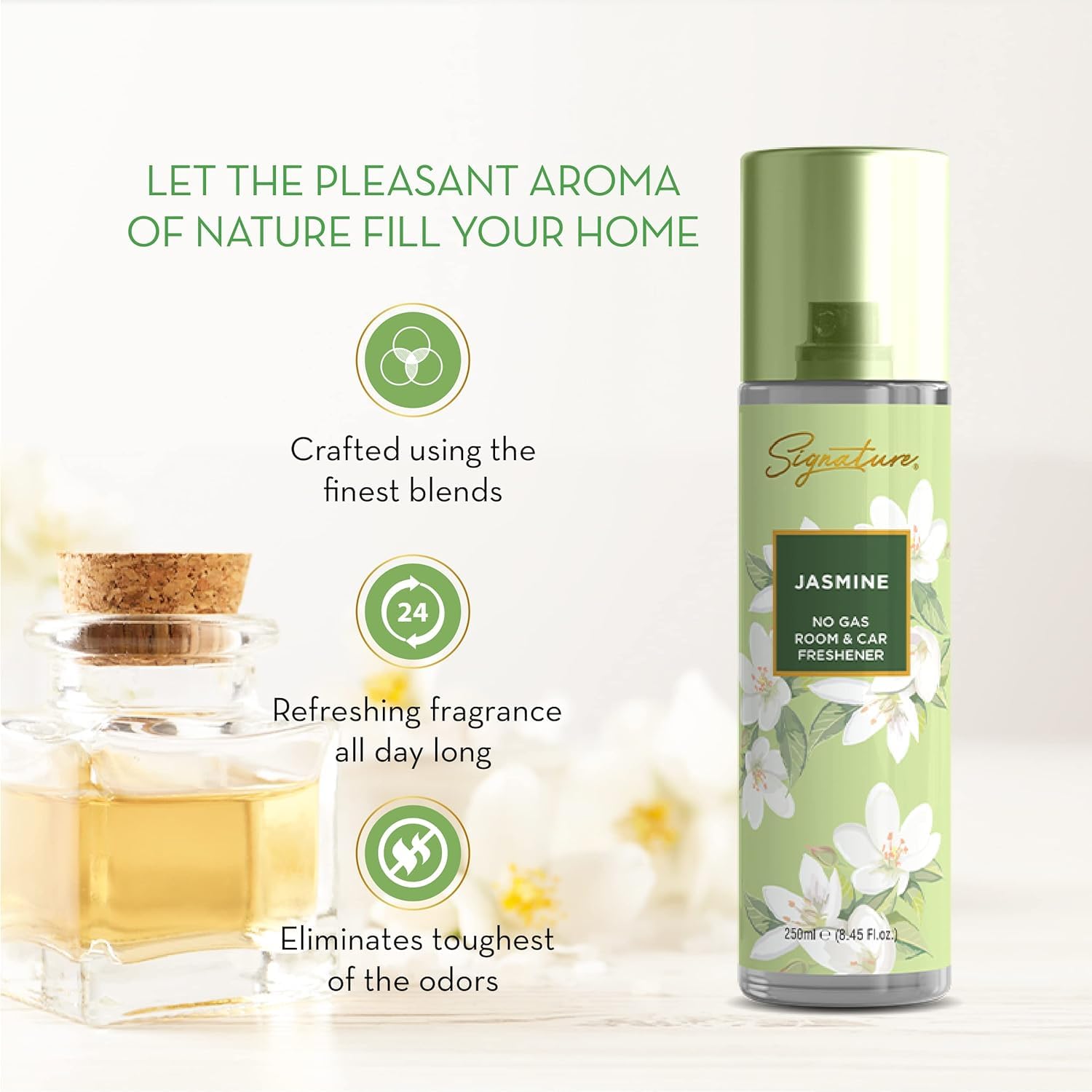 Signature Jasmine No Gas Air Freshener - 250 ml each |Instantly freshenes the area|Removes bad odour|Use anywhere in home, room & car|Revitalizing & long lasting aroma