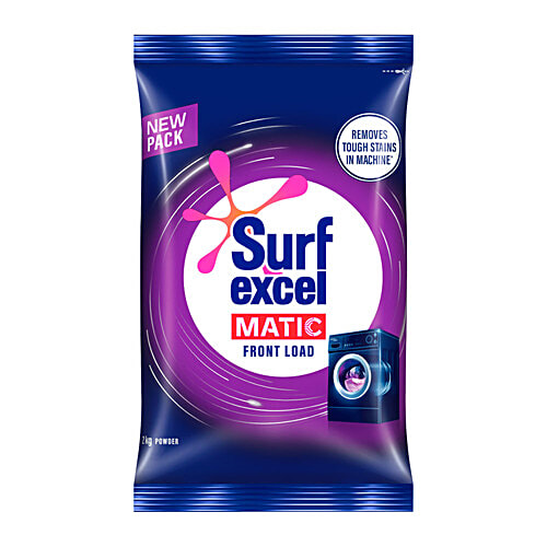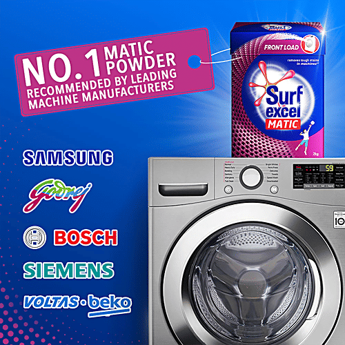 Introducing Surf Excel Matic Front Load, the specialist laundry detergent from the Surf Excel Matic family that provides 100% Tough Stain Removal in Machines. Surf Excel Matic Front Load is specially designed to work in a high-water level environment (40 litres) of front load washing machines. Its hand rub action power penetrates clothes and removes tough stains in the washing machine itself. This means no more soaking or scrubbing, saving time and effort in everyday laundry. Being a washing machine specialist detergent, it dissolves completely in the machine and ensures it leaves no residue on your clothes or your machine. Surf Excel is India's no.1 Matic detergent brand and is recommended by leading washing machine manufacturers such as Samsung, Videocon, Godrej, Panasonic, Electrolux, Siemens, Bosch, IFB, and Kelvinator. Moreover, Surf Excel Matic is value for money as all you need is 1 scoop (60 gms) of the detergent powder for a regular load of clothes. However, for heavily soiled clothes, we recommend 1 and a half scoops (90 gms) of the detergent powder. Now just dump your clothes in your front load washing machine without soaking or scrubbing them and get 100% Tough Stain Removal in your machine.